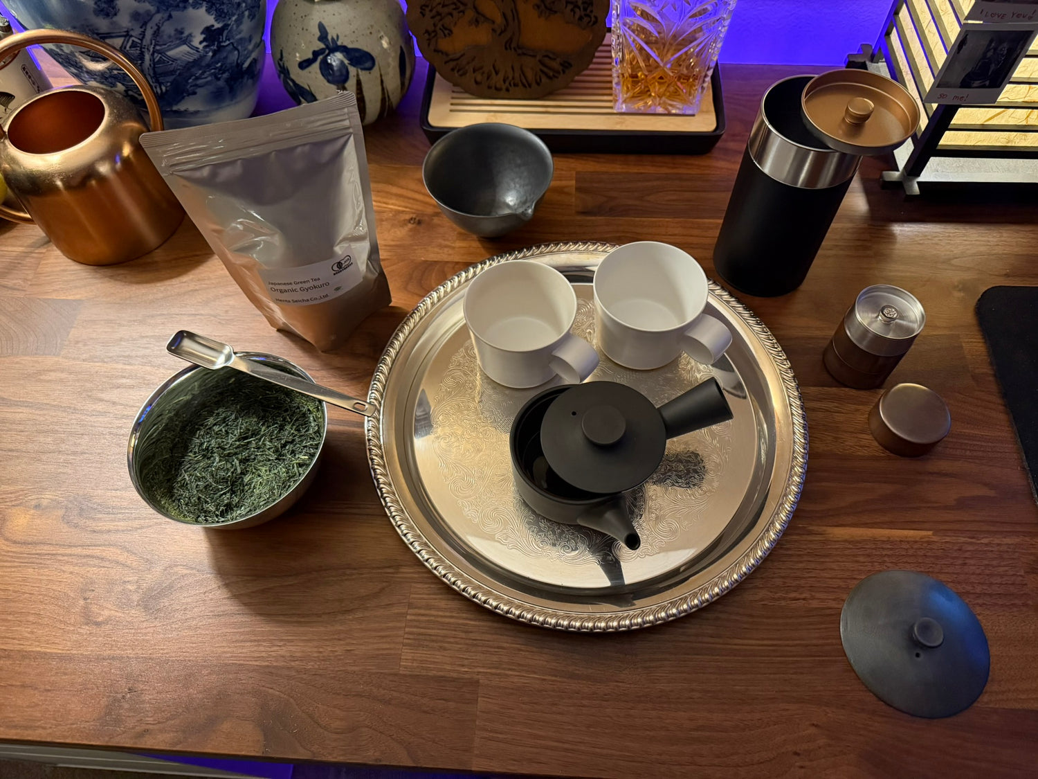 - Preparation: Preheat teapot and tea cup (Kyusu - 急須 & Yunomi - 湯呑み) with water 80 C and above. Pour out the teapot preheat water and add in desired amount of gyokuro, then pour in your desired amount of water and let rest covered. Pour off preheat water in your teacup and pour in the tea promptly. Enjoy once it’s cooled enough for your taste. Careful not to burn yourself. :3